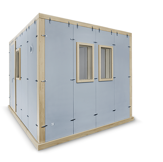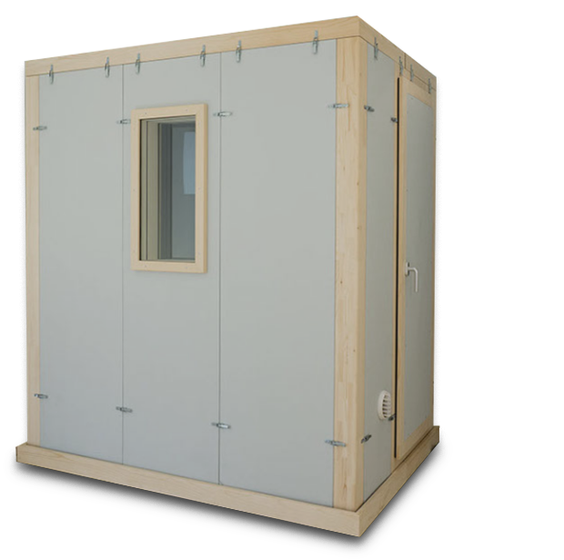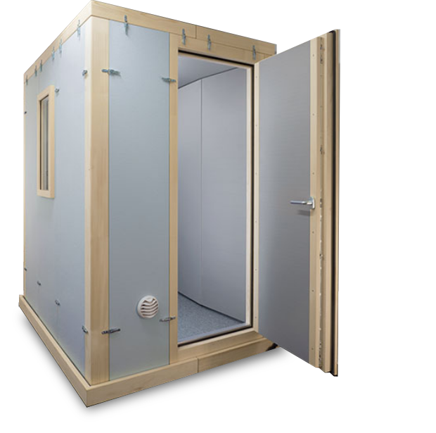 Reflection-reduced room with linear interior acoustics. The solution for recordings and measurements in research and development. Listening room and monitoring room for testing signals and software development. Acoustic booth for broadcast + TV, recording studios, mixing and mastering.