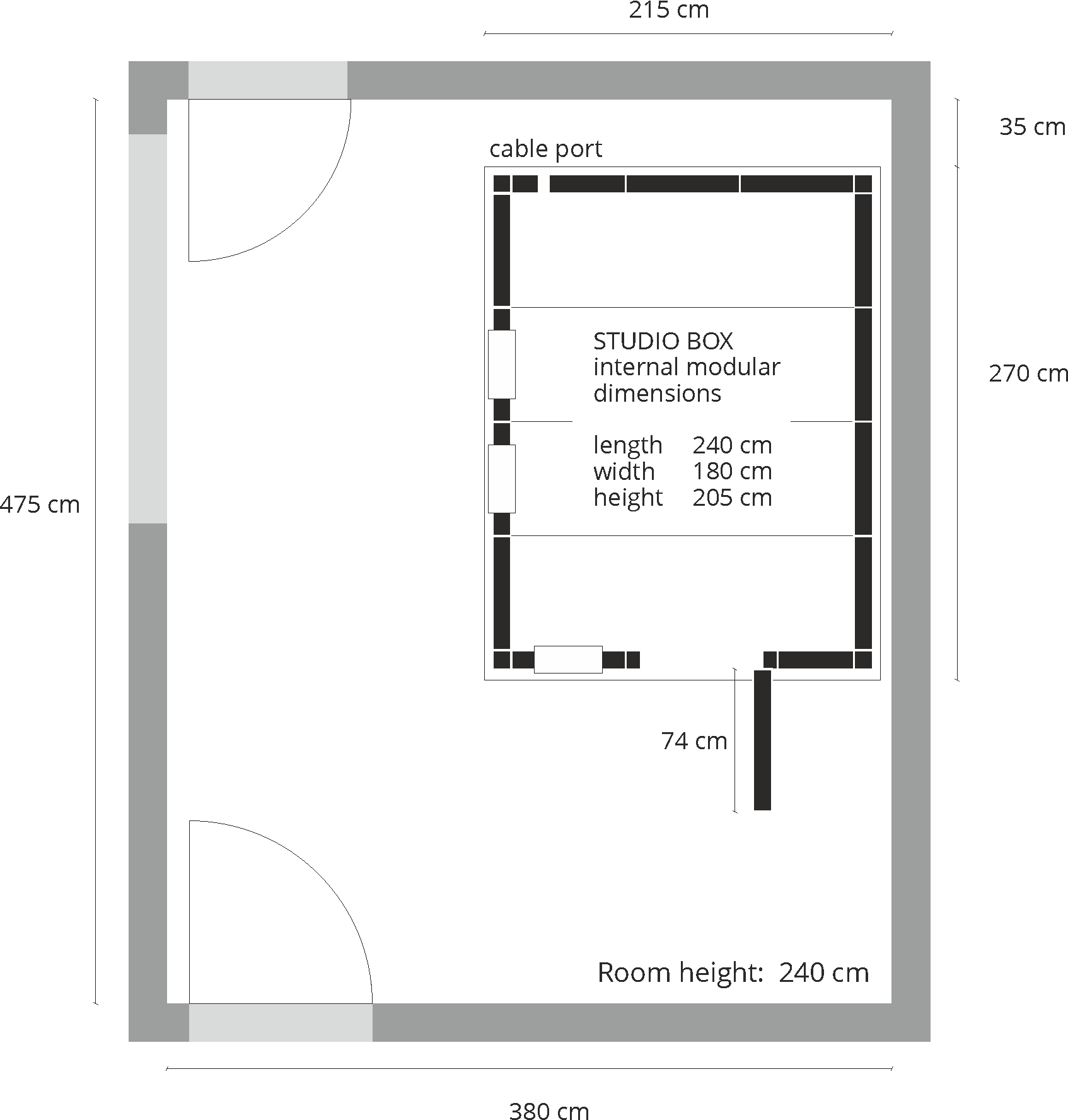 Example: STUDIOBOX 180 cm x 180 cm (interior modular size)