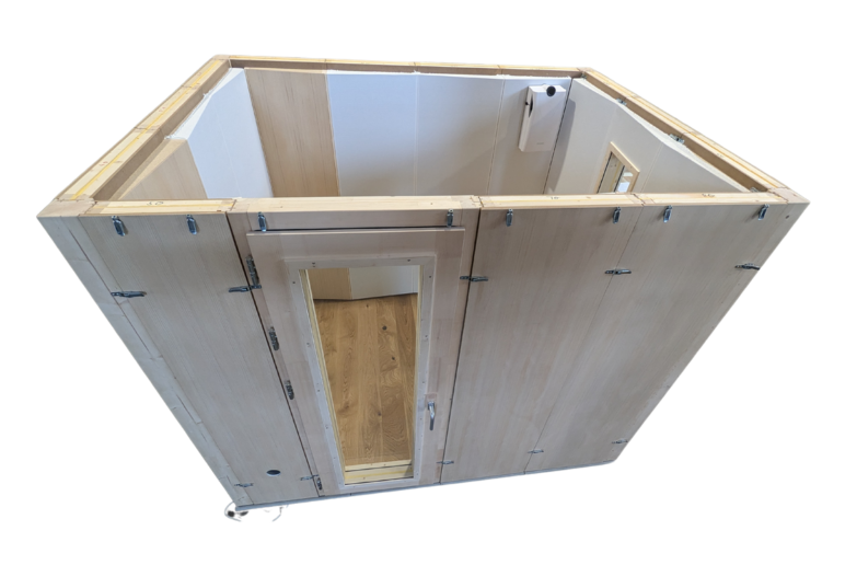 The configurator works with the standard height (205 cm internal dimension). Excess heights (up to 250 cm) and reduced heights are available on request for an additional charge - as is our extra-flat, barrier-free acoustic floor with the same high sound insulation values as the standard box. Planning tips, planning examples and planning aids can be found here.